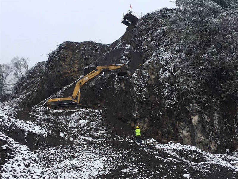 目前,廠區(qū)共8輛車在運(yùn)行施工,主要用施工材料運(yùn)輸,啟動(dòng)3臺(tái)挖機(jī)進(jìn)行礦山防護(hù)網(wǎng)安裝,初步完成安裝礦山防護(hù)網(wǎng)的前期準(zhǔn)備工作。2月15日,舉行復(fù)工儀式,天全縣相關(guān)部門對項(xiàng)目進(jìn)行復(fù)工資料驗(yàn)收檢查,已具備開工條件。丹石公司員工正迎著風(fēng)雪在大山上加緊施工,確保魚泉獅子山礦山開采項(xiàng)目能夠盡快完工。