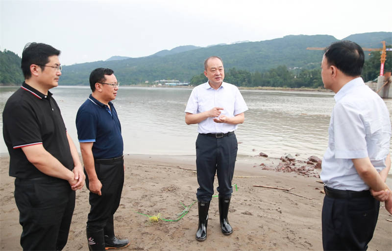 8月19日下午,市委書記蘭開馳赴雨城區(qū)草壩鎮(zhèn)青衣江大橋,察看交建集團(tuán)抗洪搶險救災(zāi)情況,慰問項(xiàng)目一線搶險救災(zāi)人員。