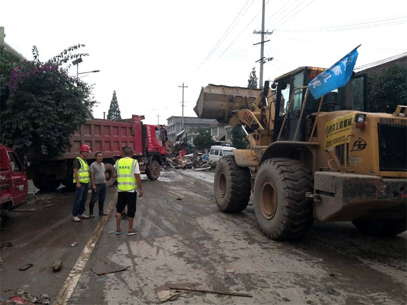 8月20日,資產(chǎn)公司調(diào)集人員20人、渣土車7臺(tái)、潛水泵4臺(tái),發(fā)電機(jī)1臺(tái),赴草壩鎮(zhèn)潤(rùn)聯(lián)商貿(mào)城進(jìn)行積水抽排、搶險(xiǎn)清淤等工作。