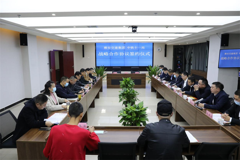 漆家華發(fā)表致辭,對中鐵十一局集團(tuán)呂 涵一行的到來表示歡迎,并簡要介紹了集團(tuán)公司主營業(yè)務(wù)板塊和生產(chǎn)經(jīng)營情況。漆家華表示,中鐵十一局集團(tuán)有限公司是集施工、設(shè)計、科研于一體的世界500強(qiáng)企業(yè)、中國鐵建股份有限公司的骨干成員企業(yè),是擁有鐵路、公路、建筑、市政公用工程施工總承包“四特四甲”資質(zhì)的特大型建筑企業(yè)集團(tuán)。雅安交建集團(tuán)是雅安市委、市政府批準(zhǔn)成立的交通運輸行業(yè)重點國有企業(yè),是市委、市政府“交通強(qiáng)市”戰(zhàn)略的重要承載主體,主要承擔(dān)全市重大交通基礎(chǔ)設(shè)施的投資建設(shè)、運營管理,以及交通資源的綜合開發(fā),經(jīng)過3年多的發(fā)展,初步形成了“工程項目建設(shè)、建材生產(chǎn)銷售、交通資源開發(fā)”三大主營業(yè)務(wù)和貿(mào)易物流、公交客運、檢驗檢測等傳統(tǒng)業(yè)務(wù)。希望雙方以簽訂戰(zhàn)略合作協(xié)議為契機(jī),在川藏鐵路建設(shè)“三電”遷改、建材供應(yīng)等已進(jìn)行實質(zhì)性合作和“片區(qū)開發(fā)”探討交流的基礎(chǔ)上,在項目投資、資源開發(fā)、建材供應(yīng)、運輸物流等方面開展深度合作,開啟雙方互惠共贏的新局面,促進(jìn)雙方共同發(fā)展。