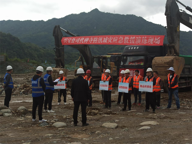 演練模擬汛期極端天氣下代碑寺項(xiàng)目施工現(xiàn)場汛期突發(fā)地質(zhì)災(zāi)害險(xiǎn)情場景,對(duì)代碑寺突發(fā)高邊坡垮塌、泥石流地質(zhì)災(zāi)害時(shí)預(yù)警處置、應(yīng)急響應(yīng)、安全防護(hù)、人員搶救、后勤物資保障等環(huán)節(jié)進(jìn)行全過程實(shí)戰(zhàn)演練。