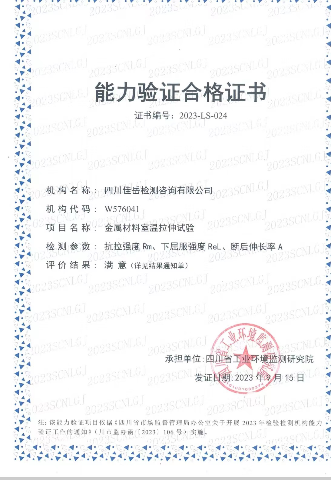 近日,四川省市場監(jiān)督管理局公布2023年能力驗(yàn)證結(jié)果,雅安交建集團(tuán)所屬四川佳岳檢測咨詢公司參加的保溫材料導(dǎo)熱系數(shù)檢測、室內(nèi)環(huán)境污染物甲醛檢測、水泥物理性能檢測、金屬材料室溫拉伸試驗(yàn)等5項(xiàng)能力驗(yàn)證,評(píng)價(jià)結(jié)果均為“滿意”。