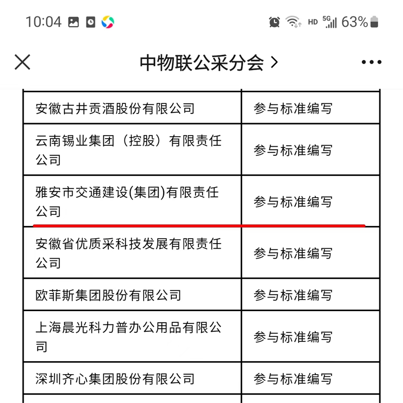 4月20日,由中國物流與采購聯(lián)合會批準立項,中國物流與采購聯(lián)合會公共采購分會牽頭編制,中國物流與采購聯(lián)合會團體標準化技術(shù)委員會歸口的團體標準《國有企業(yè)采購操作規(guī)范》正式發(fā)布,雅安市交通(建設)集團有限公司是本次團體標準起草組成員單位中全國唯一一家地級市屬國有企業(yè)平臺公司。