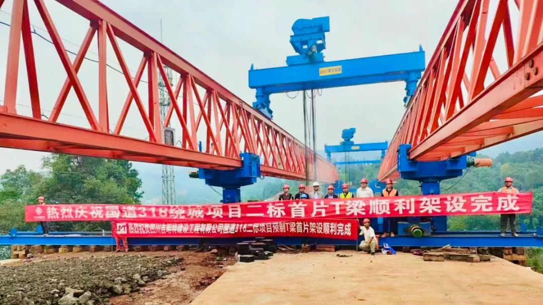 近日,由雅安交通建設(shè)(集團)有限責(zé)任公司下屬四川康藏路橋有限責(zé)任公司實施的國道318線名山區(qū)黑竹(成都界)至雨城區(qū)多營段改建工程首片長40余米、重120噸的預(yù)制T梁被精準(zhǔn)吊裝安放到名山區(qū)二道河大橋0-1號橋墩上,標(biāo)志著該項目進(jìn)入橋梁上部結(jié)構(gòu)施工階段。