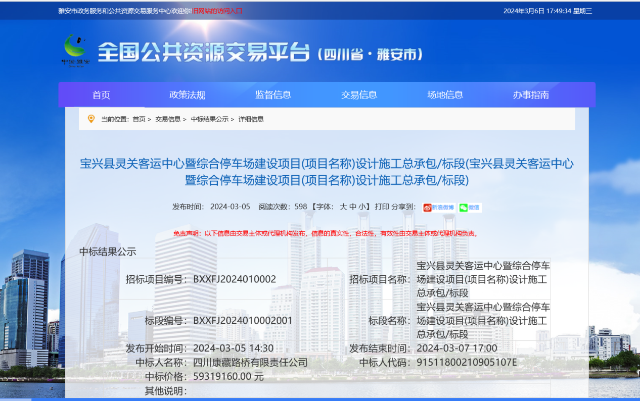 日前,雅安交建集團(tuán)康藏路橋公司中標(biāo)寶興縣靈關(guān)客運(yùn)中心暨綜合停車場(chǎng)建設(shè)項(xiàng)目,取得2024市場(chǎng)開(kāi)發(fā)“開(kāi)門紅”。