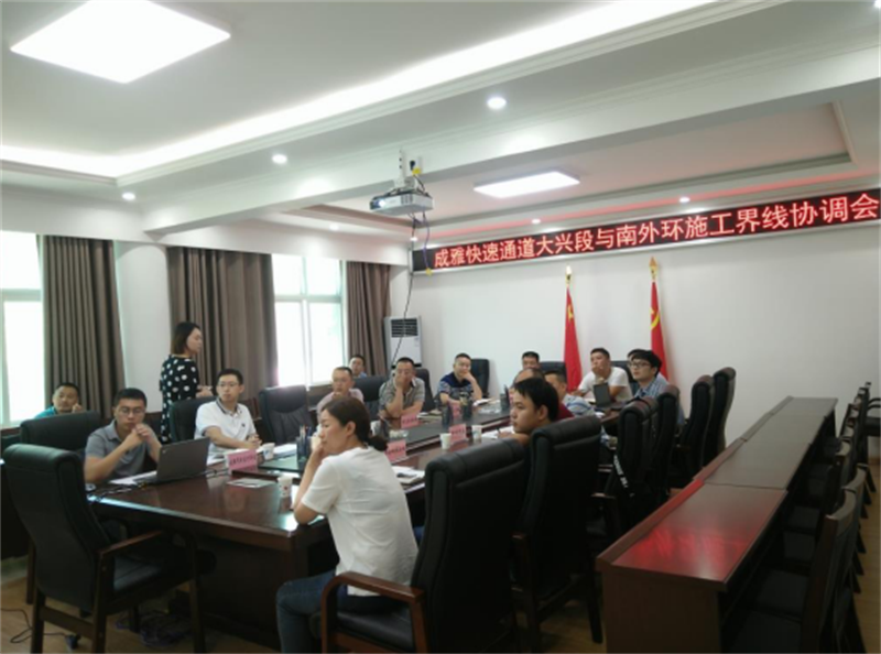 2018年6月20下午,市住建局、市交通局組織成雅快速通道新建項(xiàng)目和南外環(huán)建設(shè)項(xiàng)目兩個項(xiàng)目業(yè)主單位 、設(shè)計(jì)單位、監(jiān)理單位、施工單位在交建集團(tuán)召開協(xié)調(diào)會,協(xié)商解決成雅快速通道大興段與南外環(huán)設(shè)計(jì)方案對接問題。