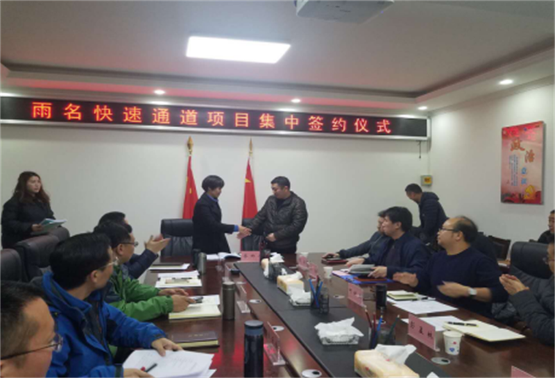 1月23日,雨名快速通道項(xiàng)目集中簽約儀式在雅安交建集團(tuán)四樓會(huì)議室舉行。雅安市交建集團(tuán)、四川省公路工程監(jiān)理事務(wù)所、四川瑞通工程建設(shè)集團(tuán)有限公司、山東黃河工程集團(tuán)有限公司將共同攜手,加快建設(shè)雨名快速通道,加速我市三區(qū)同城化發(fā)展步伐,共同打造品質(zhì)工程。