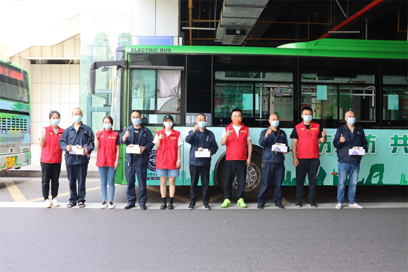 最后,青年團員們帶著親手制作的40份防疫香囊、藿香正氣液、口罩等防疫消暑慰問品,來到市區(qū)內(nèi)的各個公交車站點開展了志愿者服務活動。團員志愿者們親手為公交駕駛員師傅送上了慰問物質,關切詢問他們的作息時間、身體狀況等,并感謝他們?yōu)槌鞘邪l(fā)展和群眾出行付出的辛苦勞動,同時叮囑大家在高溫季節(jié)一定要注意勞逸結合,做好防疫和防暑措施。