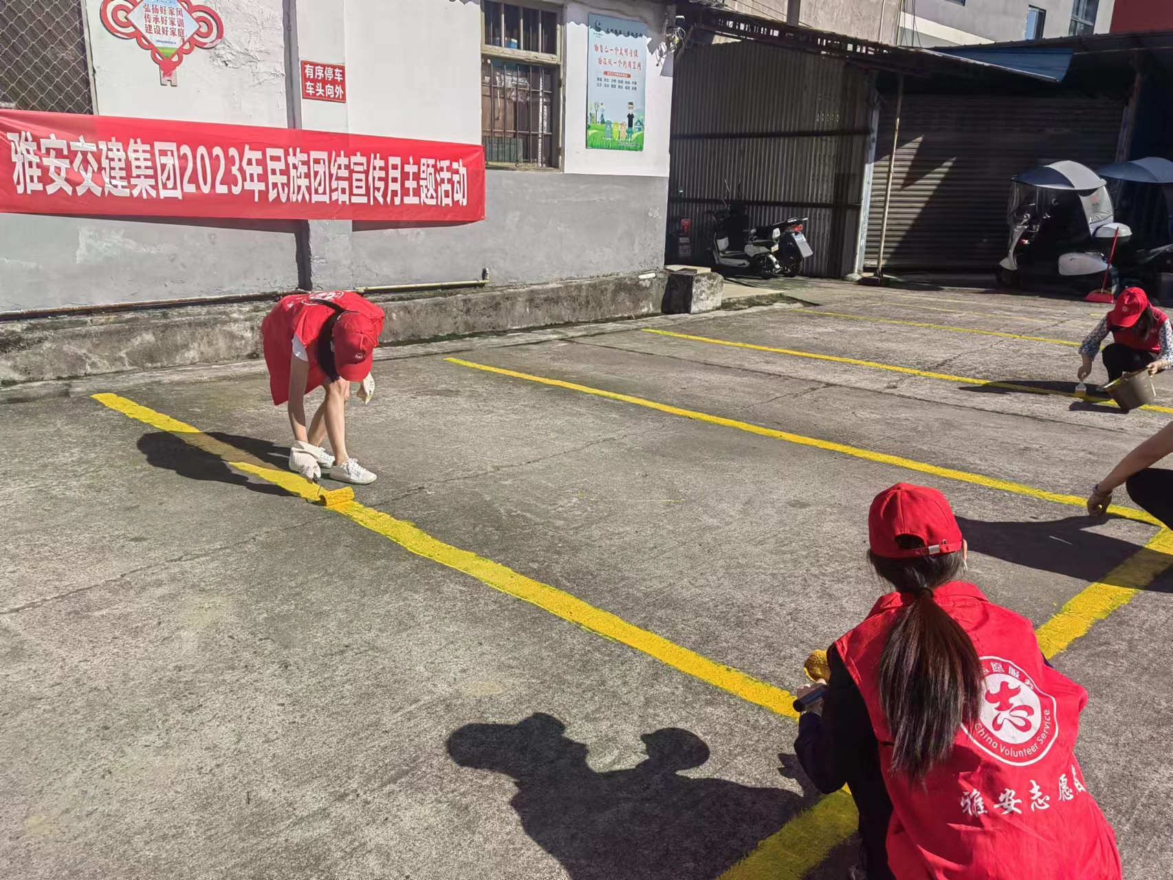 活動現(xiàn)場分宣傳講解、上門服務、衛(wèi)生清潔、停車場油漆添補4個小組。通過發(fā)放宣傳資料、現(xiàn)場答疑解惑、衛(wèi)生死角清掃、停車線添補等活動,向小區(qū)住戶、街道過往市民、車站乘客等群眾宣傳民族團結(jié)示范市創(chuàng)建工作相關問題和民族團結(jié)相關知識,進一步提升群眾對民族團結(jié)進步的認識,激發(fā)居民促進共同繁榮發(fā)展的主動意識,攜手推進民族團結(jié)進步創(chuàng)建,助力雅安市創(chuàng)建民族團結(jié)進步示范市工作。
