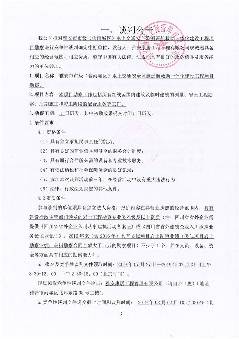 雅安市市級(含雨城區(qū))水上交通安全監(jiān)測巡航救助一體化建設(shè)工程項目勘察