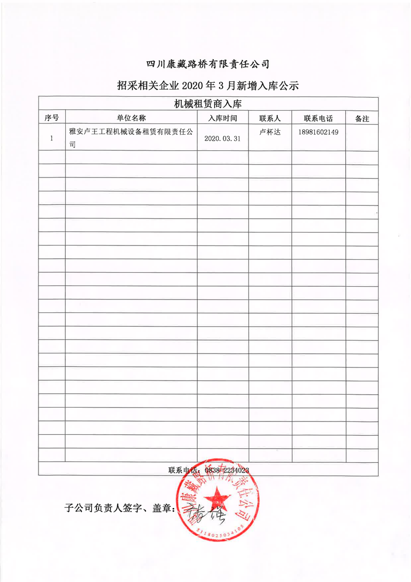 四川康藏路橋有限責任公司招采相關(guān)企業(yè)2020年3月新增入庫公示