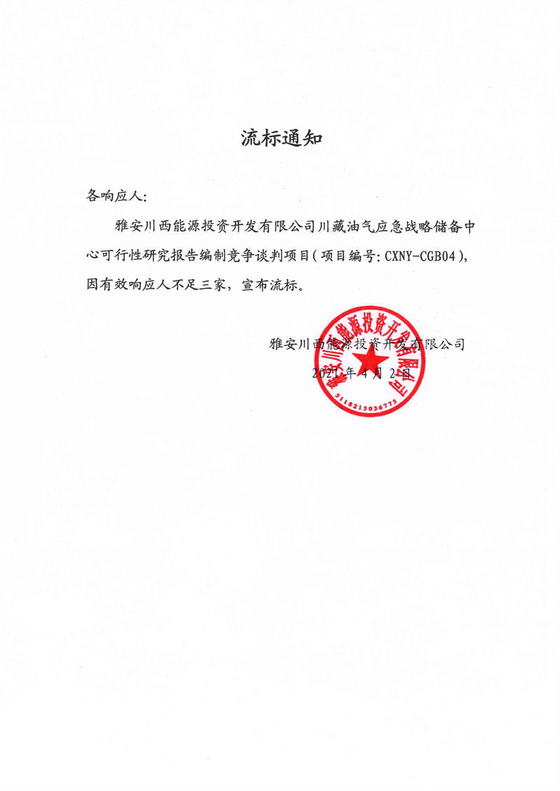 雅安川西能源投資開(kāi)發(fā)有限公司川藏油氣應(yīng)急戰(zhàn)略儲(chǔ)備中心可行性研究報(bào)告編制競(jìng)爭(zhēng)談判項(xiàng)目流標(biāo)通知