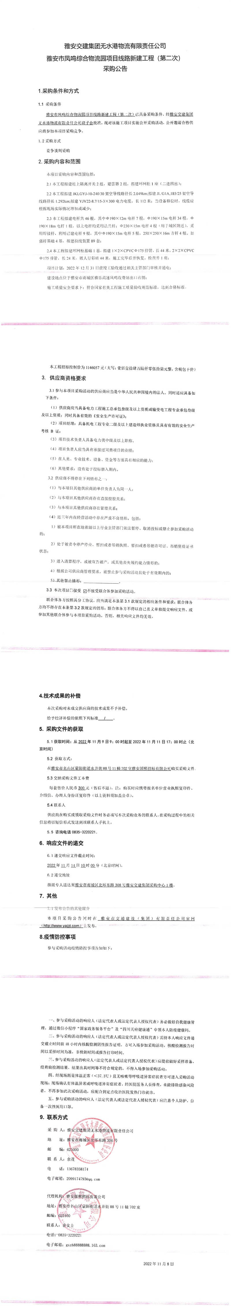 雅安交建集團(tuán)無(wú)水港物流有限責(zé)任公司雅安市鳳鳴綜合物流園項(xiàng)目線路新建工程(第二次)采購(gòu)公告