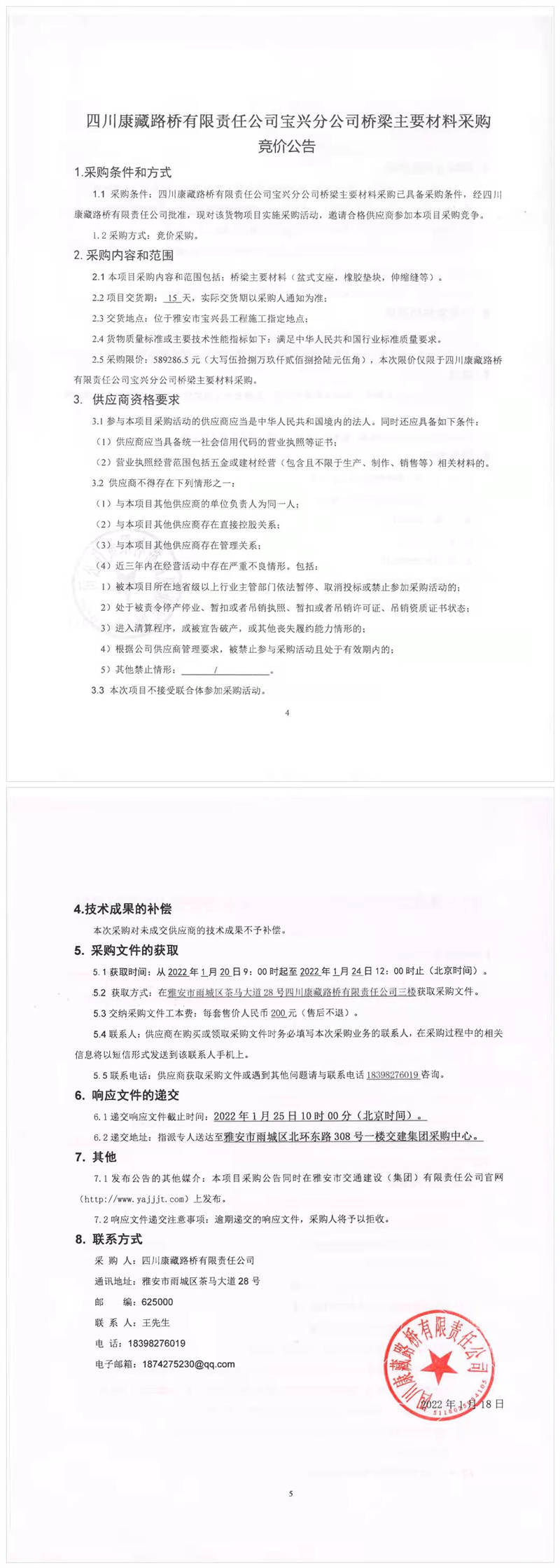 四川康藏路橋有限責任公司2022年第一季度供應商入庫招募公告
