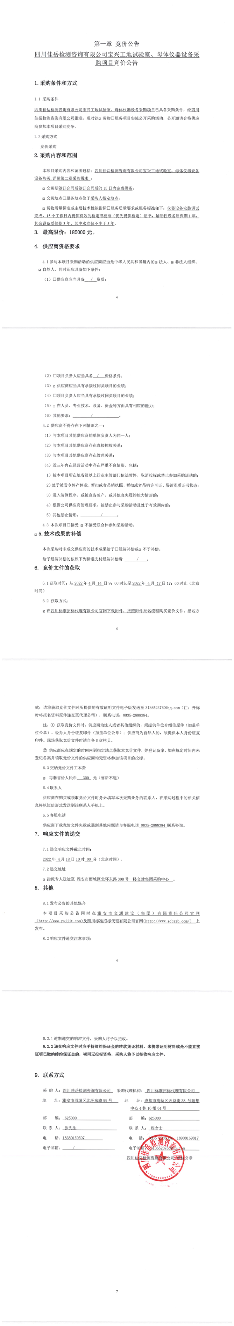 四川佳岳檢測咨詢有限公司寶興工地試驗(yàn)室、母體儀器設(shè)備采購項(xiàng)目競價(jià)公告