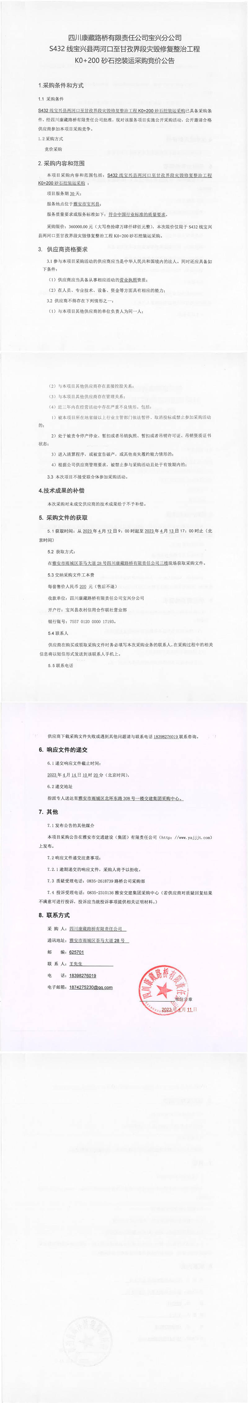 四川康藏路橋有限責(zé)任公司寶興分公司S432寶興縣兩河口至甘孜界段災(zāi)毀修復(fù)整治工程K0+200砂石挖裝運(yùn)采購(gòu)競(jìng)價(jià)公告