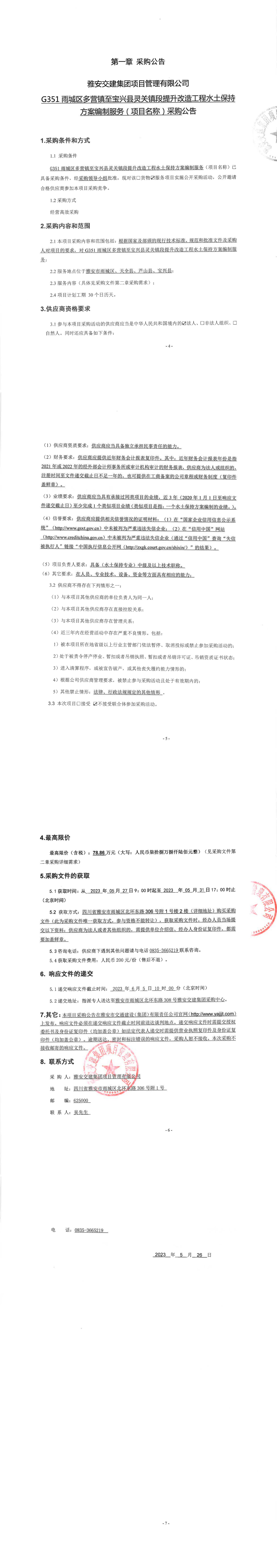 雅安交建集團(tuán)項(xiàng)目管理有限公司G351雨城區(qū)多營(yíng)鎮(zhèn)至寶興縣靈關(guān)鎮(zhèn)段提升改造工程水土保持方案編制服務(wù)(項(xiàng)目名稱)采購(gòu)公告