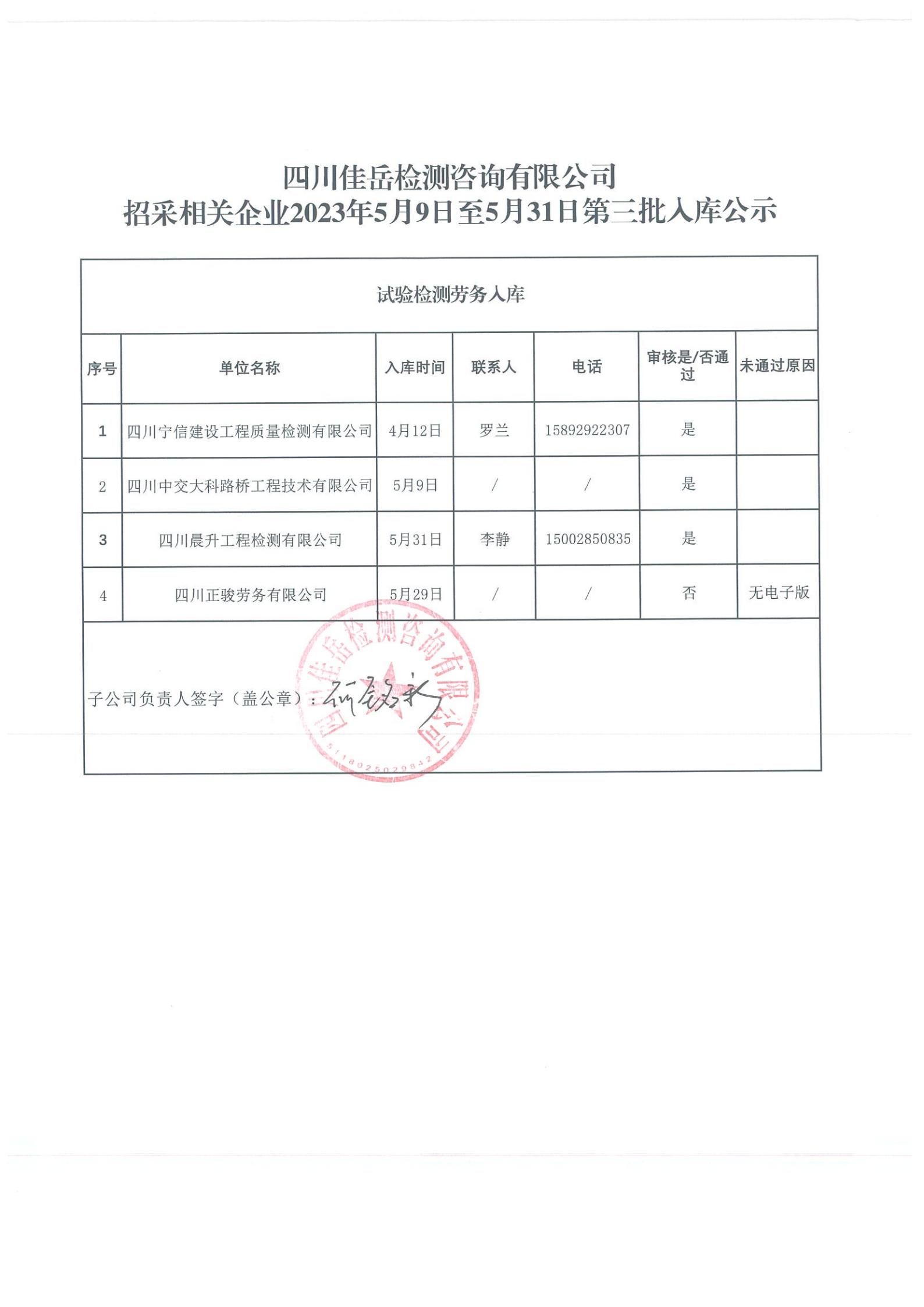 四川佳岳檢測(cè)咨詢有限公司(試驗(yàn)檢測(cè)勞務(wù)供應(yīng)商庫(kù))2023年5月9日至5月31日第三批入庫(kù)結(jié)果公示