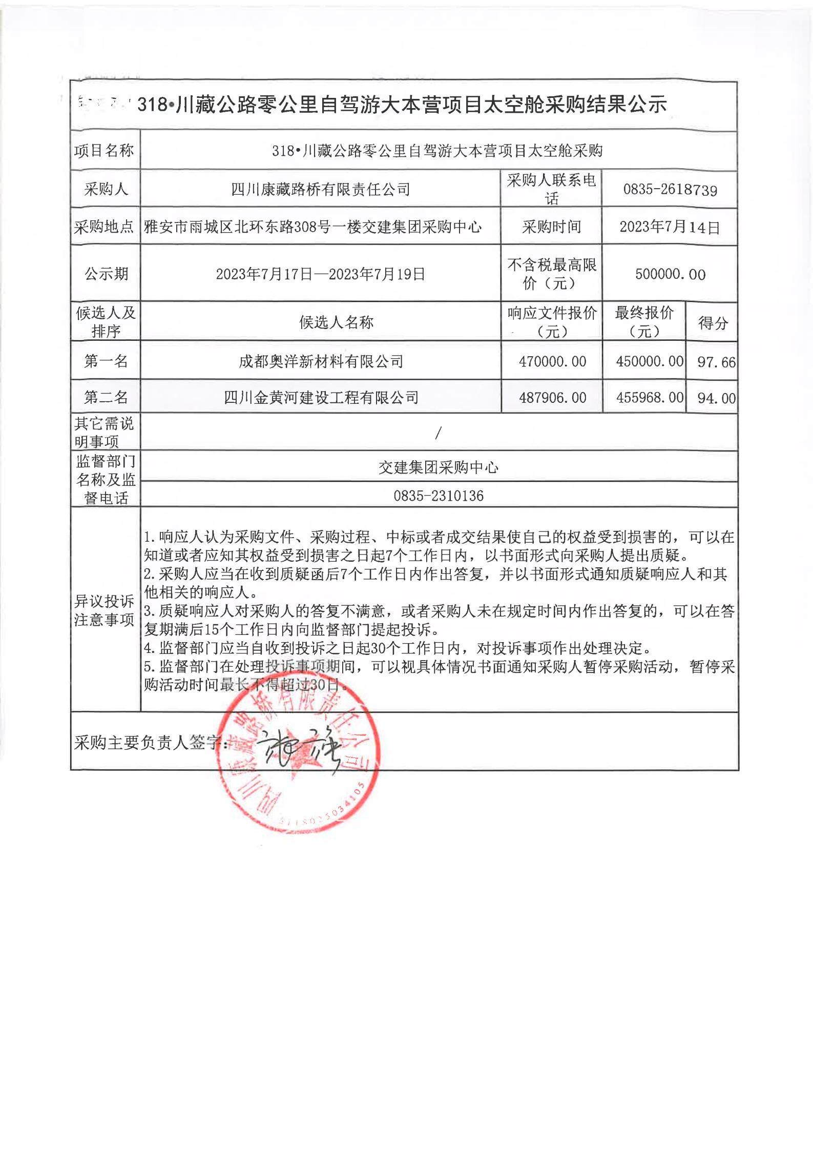 四川康藏路橋有限責(zé)任公司318·川藏公路零公里自駕游大本營項(xiàng)目太空艙采購結(jié)果公示