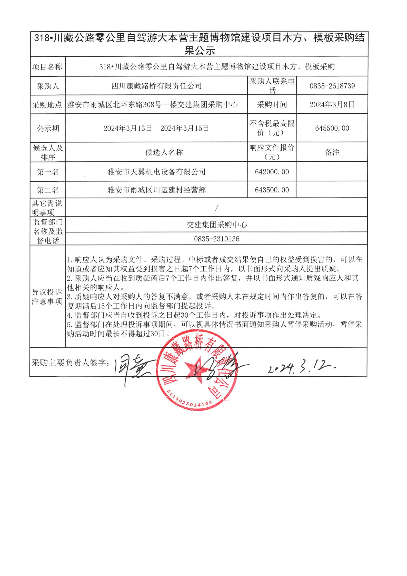 四川康藏路橋有限責(zé)任公司318•川藏公路零公里自駕游大本營主題博物館建設(shè)項(xiàng)目木方、模板采購結(jié)果公示
