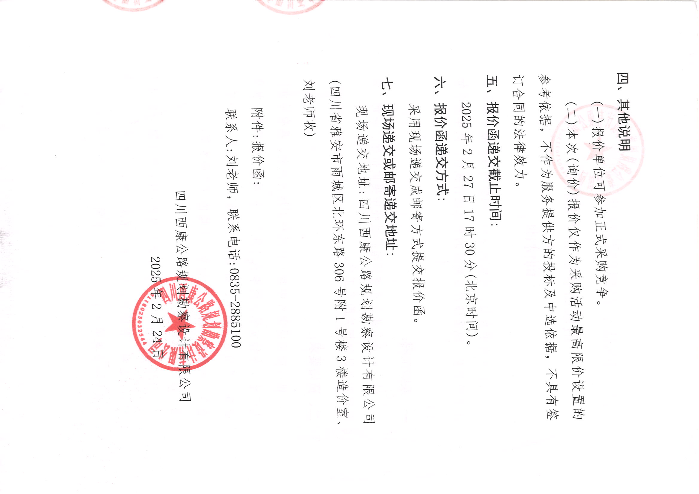 四川西康公路規(guī)劃勘察設計有限公司資質(zhì)維護服務采購限價詢價函