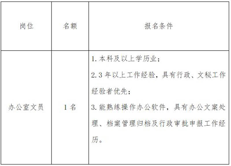 雅安交建集團(tuán)康居建設(shè)工程質(zhì)量與室內(nèi)環(huán)境污染檢測(cè)有限公司是雅安市交通建設(shè)(集團(tuán))有限責(zé)任公司下屬子公司,主要從事民用建筑室內(nèi)環(huán)境污染檢測(cè)業(yè)務(wù),F(xiàn)根據(jù)公司業(yè)務(wù)發(fā)展需要,擬向社會(huì)公開招聘1名辦公室文員,現(xiàn)將有關(guān)事項(xiàng)公告如下: