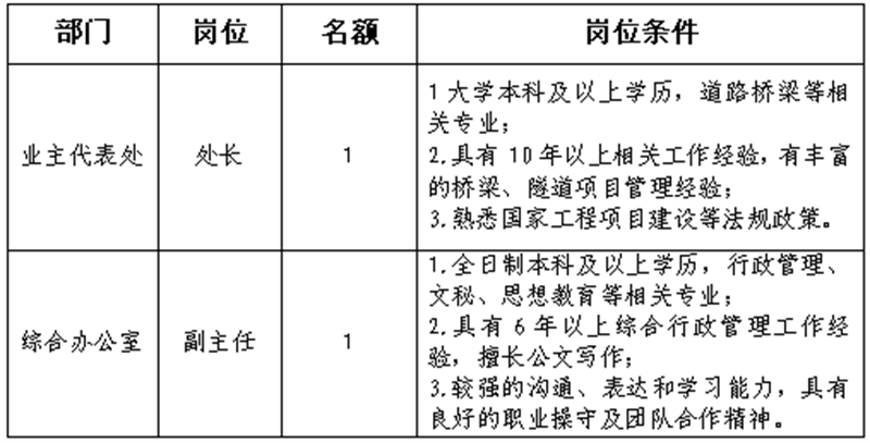 根據(jù)發(fā)展需要,決定面向社會公開招聘雅安市交通建設(shè)(集團)有限責(zé)任公司(以下簡稱“雅安交建集團”)所屬子公司相關(guān)人員2名,現(xiàn)將有關(guān)事項公告如下: