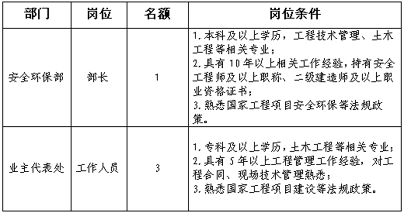 根據發(fā)展需要,決定面向社會公開招聘雅安市交通建設(集團)有限責任公司(以下簡稱“雅安交建集團”)所屬子公司相關人員4名,現將有關事項公告如下: