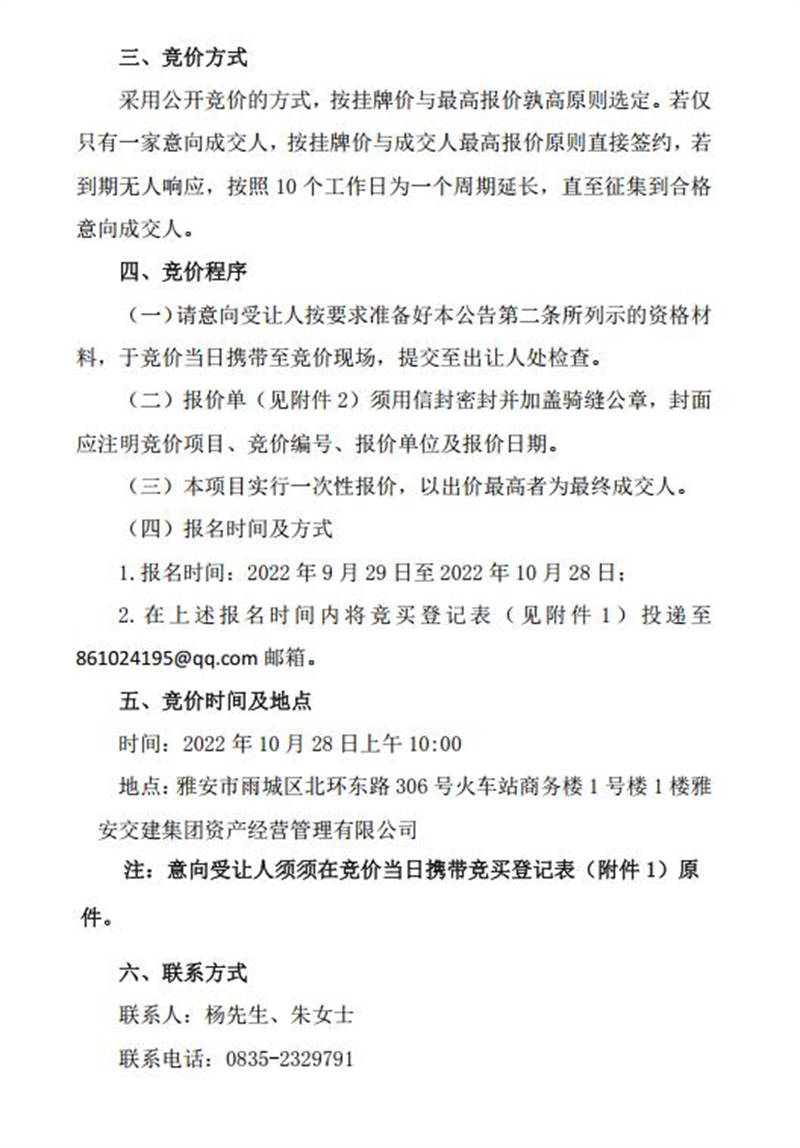 雅安交建無水港公司關(guān)于閑置資產(chǎn)公開招租的公告