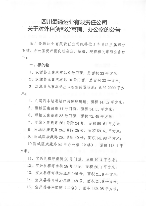 ËÄ´¨Êñͨß\(y¨´n)˜I(y¨¨)ÓÐÏÞØŸ(z¨¦)Èι«Ë¾êP(gu¨¡n)ÓÚŒ¦Íâ×âÙU²¿·ÖéTÃæ¡¢Þk¹«ÊÒÙY®a(ch¨£n)µÄ¹«¸æ