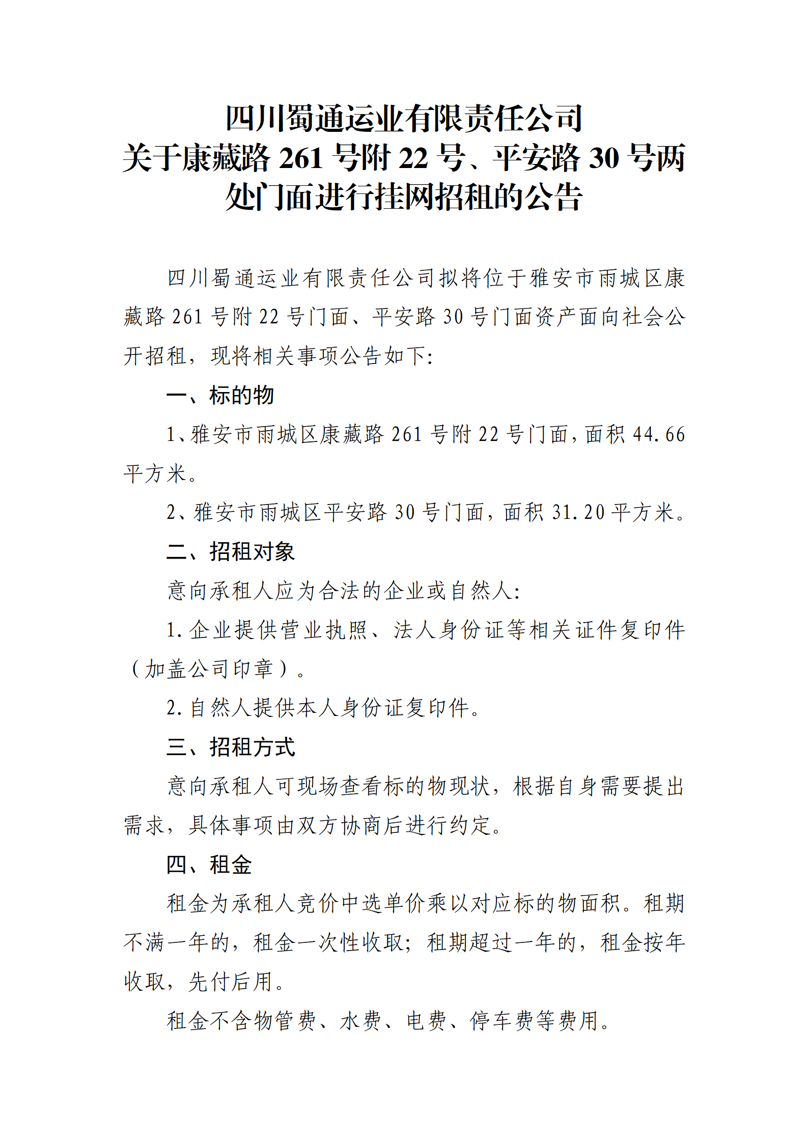 ËÄ´¨Êñͨß\˜I(y¨¨)ÓÐÏÞØŸ(z¨¦)Èι«Ë¾ êP(gu¨¡n)ÓÚ¿µ²ØÂ·261Ì–¸½22Ì–¡¢Æ½°²Â·30Ì–ƒÉÌŽéTÃæßMÐÐ’ì¾W(w¨£ng)ÕÐ×âµÄ¹«¸æ