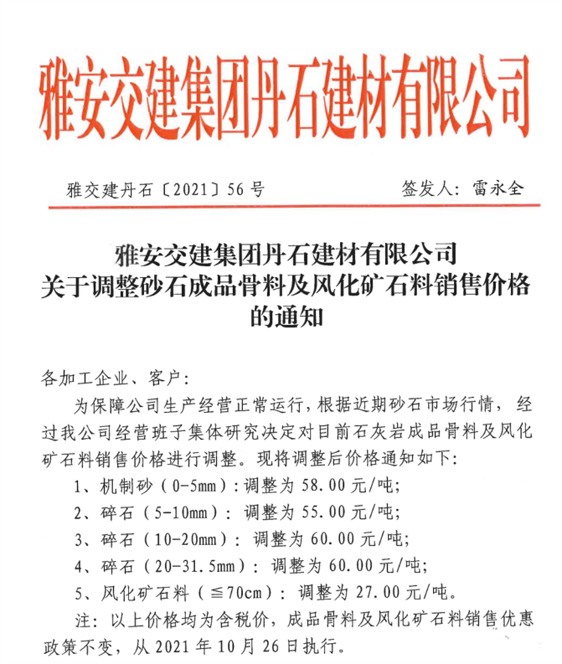 ÑŰ²½»½¨¼¯ˆF(tu¨¢n)µ¤Ê¯¹«Ë¾êP(gu¨¡n)ÓÚÕ{(di¨¤o)Õû³ÉÆ·¹ÇÁϼ°ïL(f¨¥ng)»¯µVʯÁÏäN(xi¨¡o)ÊÛƒr(ji¨¤)¸ñµÄ֪ͨ£¨2021.10.26£©