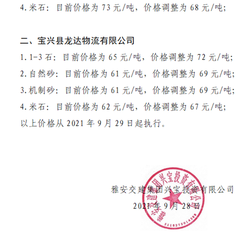 ÑŰ²½»½¨¼¯ˆFÅdŒš¹«Ë¾êPÓÚÕ{Õûɰʯ³ÉÆ·ÁÏäNÊÛƒr¸ñµÄ֪ͨ£¨2021.9.28£©